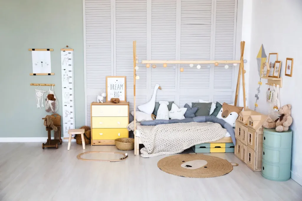 Choosing colors that your child loves helps tie the whole room together. Ideally, the walls, bedding, and decor should follow the same color story. It doesn’t need to be perfect, just a mix of a few favorite shades and some neutrals to balance things out.