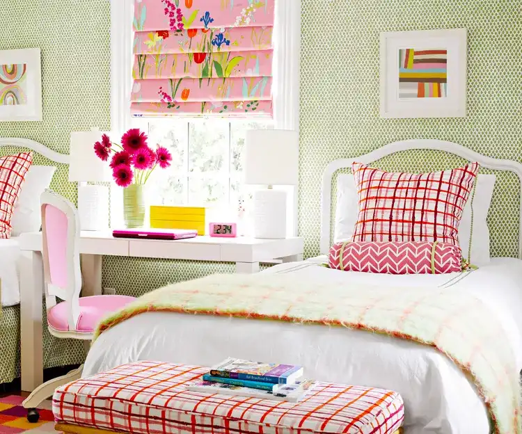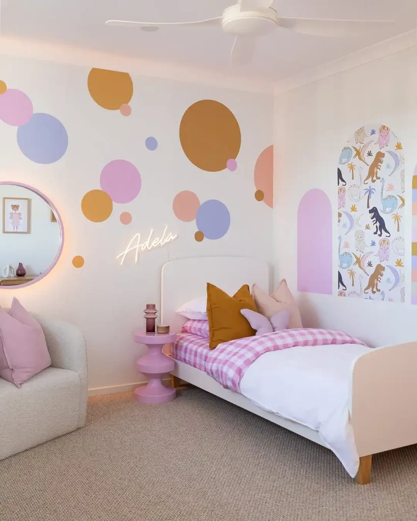 Mixing bold patterns can bring youthful energy and personality to any girl’s bedroom. Balance is key, so combine large, medium, and small-scale prints to create harmony without overwhelming the space.
