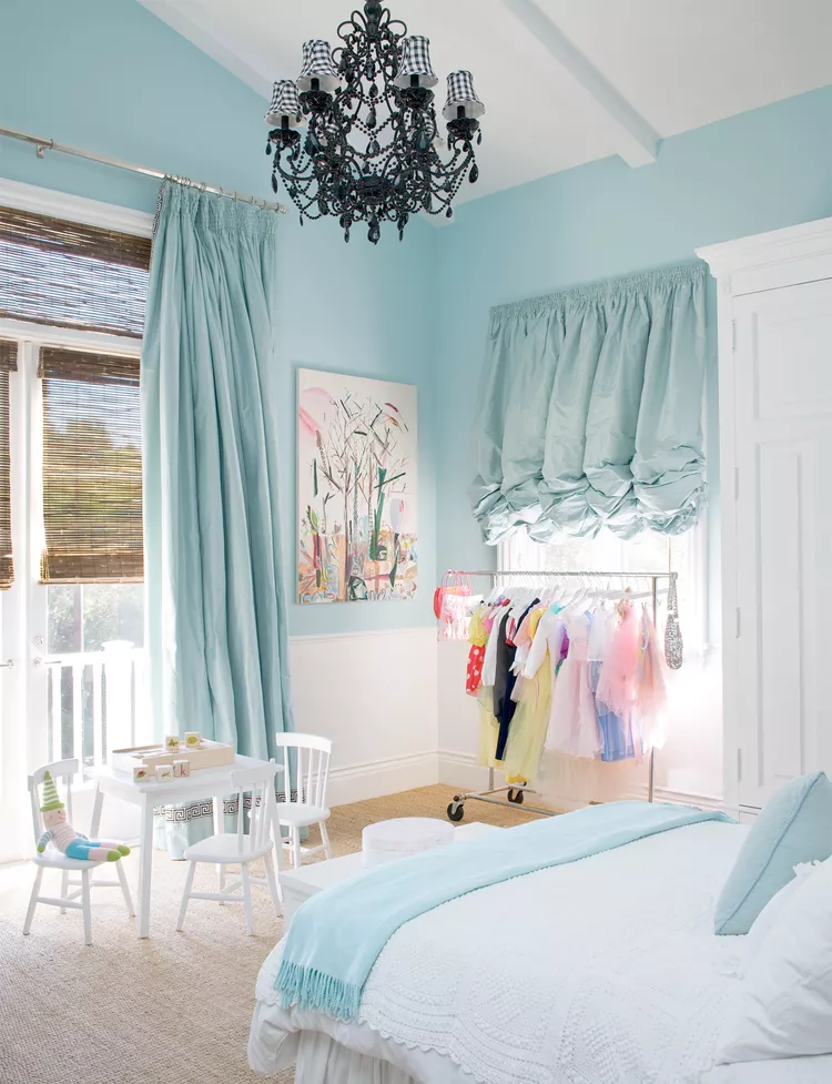 Add sparkle with a crystal chandelier to bring both elegance and whimsy. In smaller rooms, slim furniture pieces with smart storage will help keep things tidy while maintaining an open, airy feel.