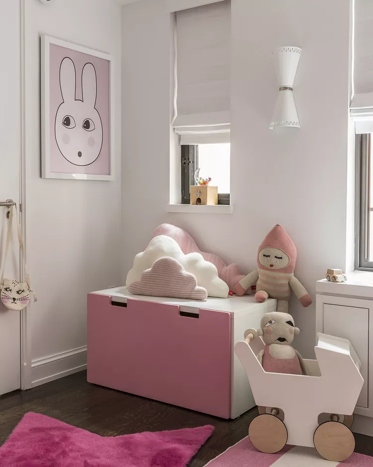 Give a pink toddler room a fresh and stylish twist by layering multiple shades. Sissy + Marley Interior Design combined white walls with pops of rosy tones, from bright raspberry to candy pink. The result is a room that feels sweet and cheerful without being over the top.