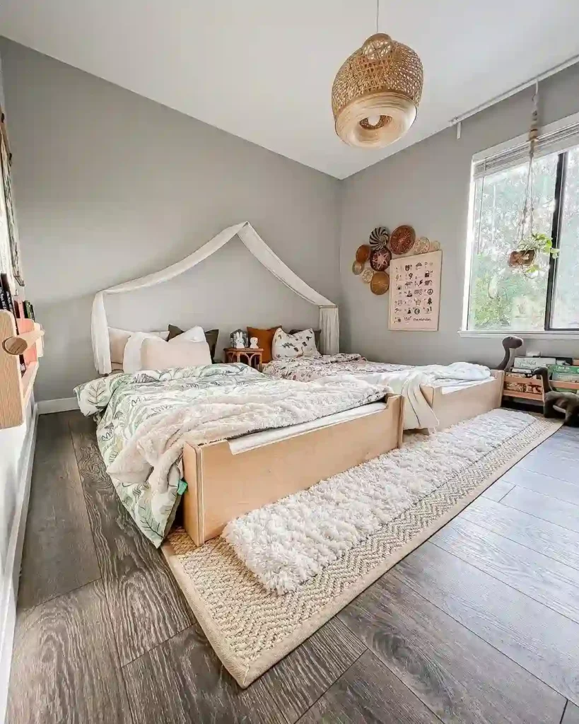There is something so calming about a room that feels effortless. Warm wood tones, soft layers, and a simple layout make this twin bed setup feel cozy and grounded.