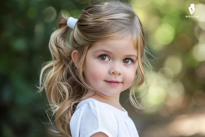 A simple bow can instantly brighten up your toddler’s look. Pull the top section of hair into a small ponytail and clip on a bow that matches her outfit. It is quick, cute, and perfect for both everyday wear and special moments.