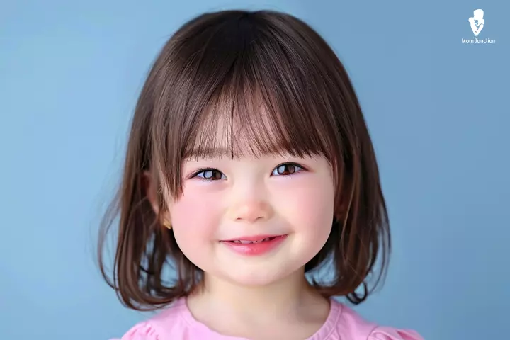 For toddlers with straight, droopy hair that falls forward, this style gives a playful look. Separate a section of hair near the forehead, comb it neatly, and space out individual strands to form soft fringes.