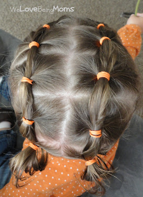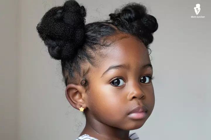 This cute and simple style keeps your toddler’s hair tidy while still looking fun. Divide the hair into small sections, crossing each one over before tying with colorful elastics. It stays secure during playtime and looks adorable from every angle.