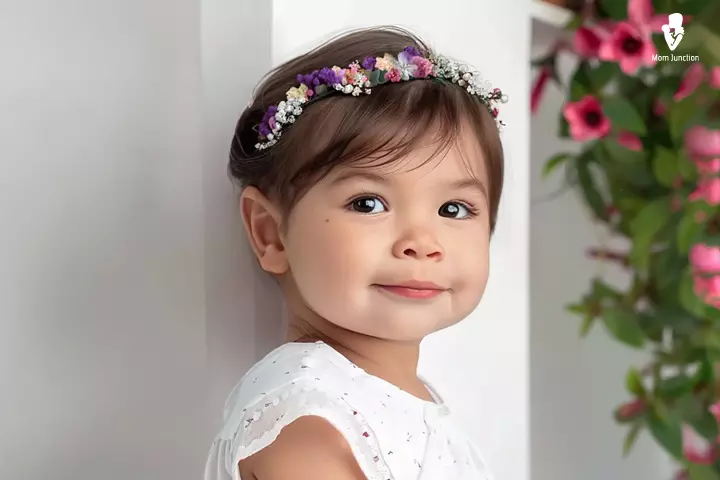 This quick hairstyle is perfect for short, wavy, or curly hair. Wash and dry the hair, comb it as usual, then place a floral hairband. The band adds a cute pop of color and keeps hair neat while your little one plays.