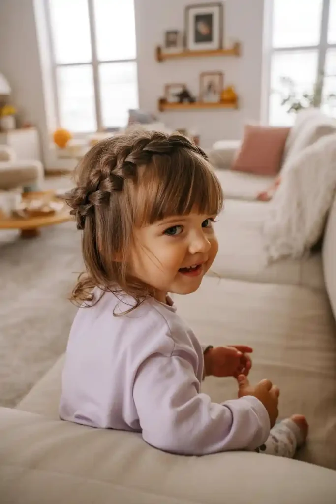 Mini French braids look adorable on toddlers and help keep their hair tidy. You can braid small sections from the top or sides and leave the bangs to frame the face.