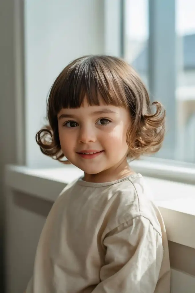 For toddlers with shorter hair, a bob with curled ends adds a cute twist. Use a small round brush to gently curl the tips inward after brushing.