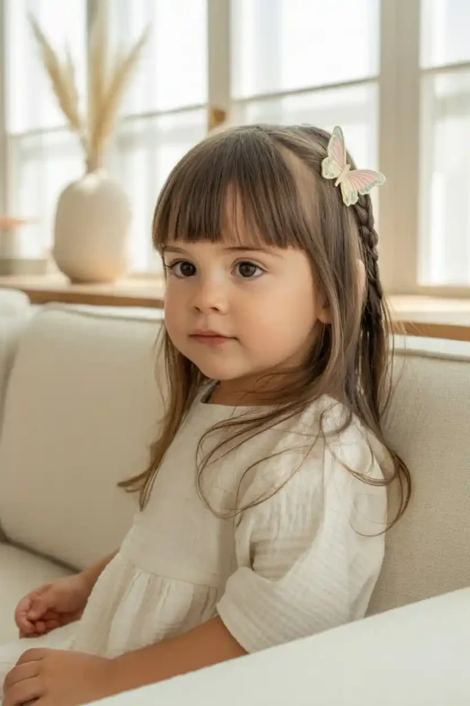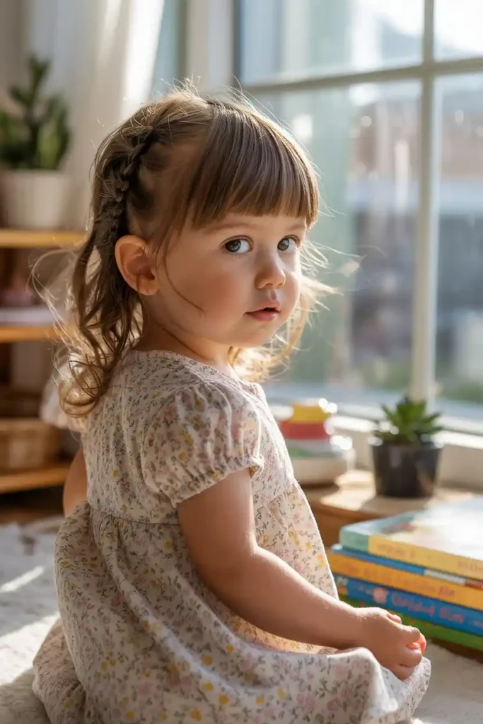 If your toddler’s bangs are growing out, try a small braid that clips to the side. It’s a lovely way to keep hair out of their eyes while adding a bit of style.
