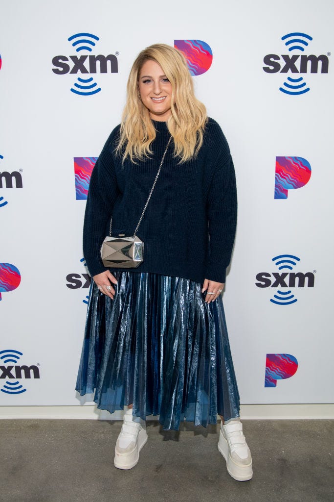 This outfit feels cool, relaxed, and effortlessly chic. The loose navy sweater pairs beautifully with the metallic blue pleated skirt, adding a soft shine and flow to the look. White sneakers keep it casual and modern, while the silver crossbody bag ties it all together for a stylish winter day out.
