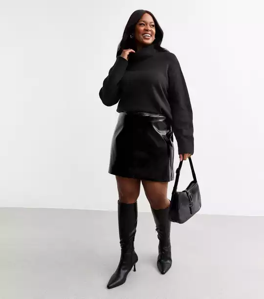 An all-black outfit always feels powerful and sleek. The shiny leather mini skirt paired with a soft black turtleneck creates a balanced mix of bold and cozy. Add knee-high boots and a small handbag to complete a confident winter look that turns heads without trying too hard.