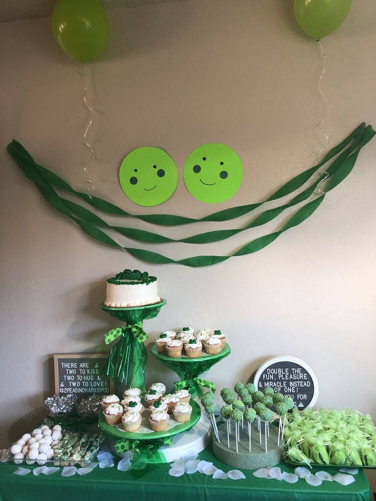 Celebrate your twins with the sweetest “Two Peas in a Pod” theme. This adorable idea is all about soft green hues, smiling pea faces, and simple, cheerful decor.