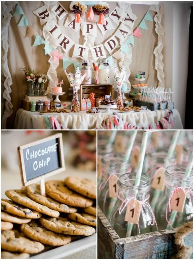 Add a simple birthday banner and touches of burlap or lace for a warm, homey look. This sweet and simple theme feels inviting and is sure to make everyone smile as they enjoy classic treats together.