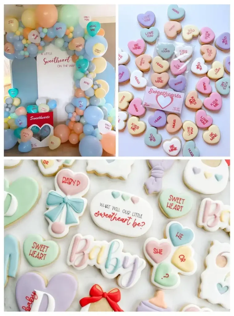 Inspired by the classic candy, this theme is all about retro charm and soft pastel colors. Use heart-shaped décor everywhere and bring in those iconic conversation heart vibes for a baby shower that feels sweet, playful, and timeless.