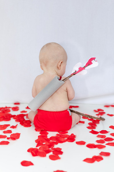 Your baby boy will look adorable surrounded by pops of red, tiny hearts, or a simple white backdrop. Keep it playful and sweet to capture those precious Valentine smiles.