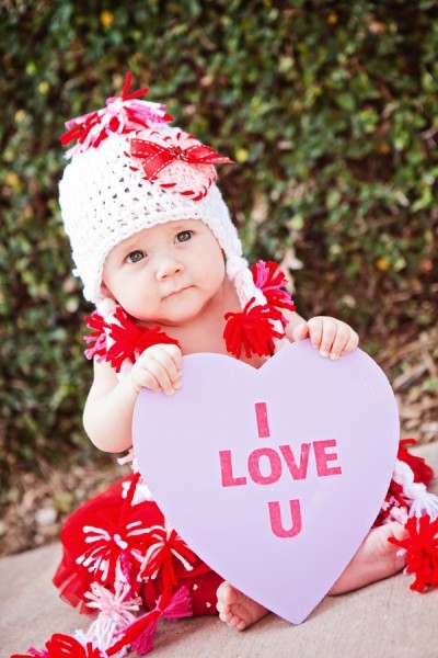 This sweet “Baby Kisses” photo idea is just adorable. A few lipstick marks on those chubby cheeks make for the cutest Valentine’s memory.