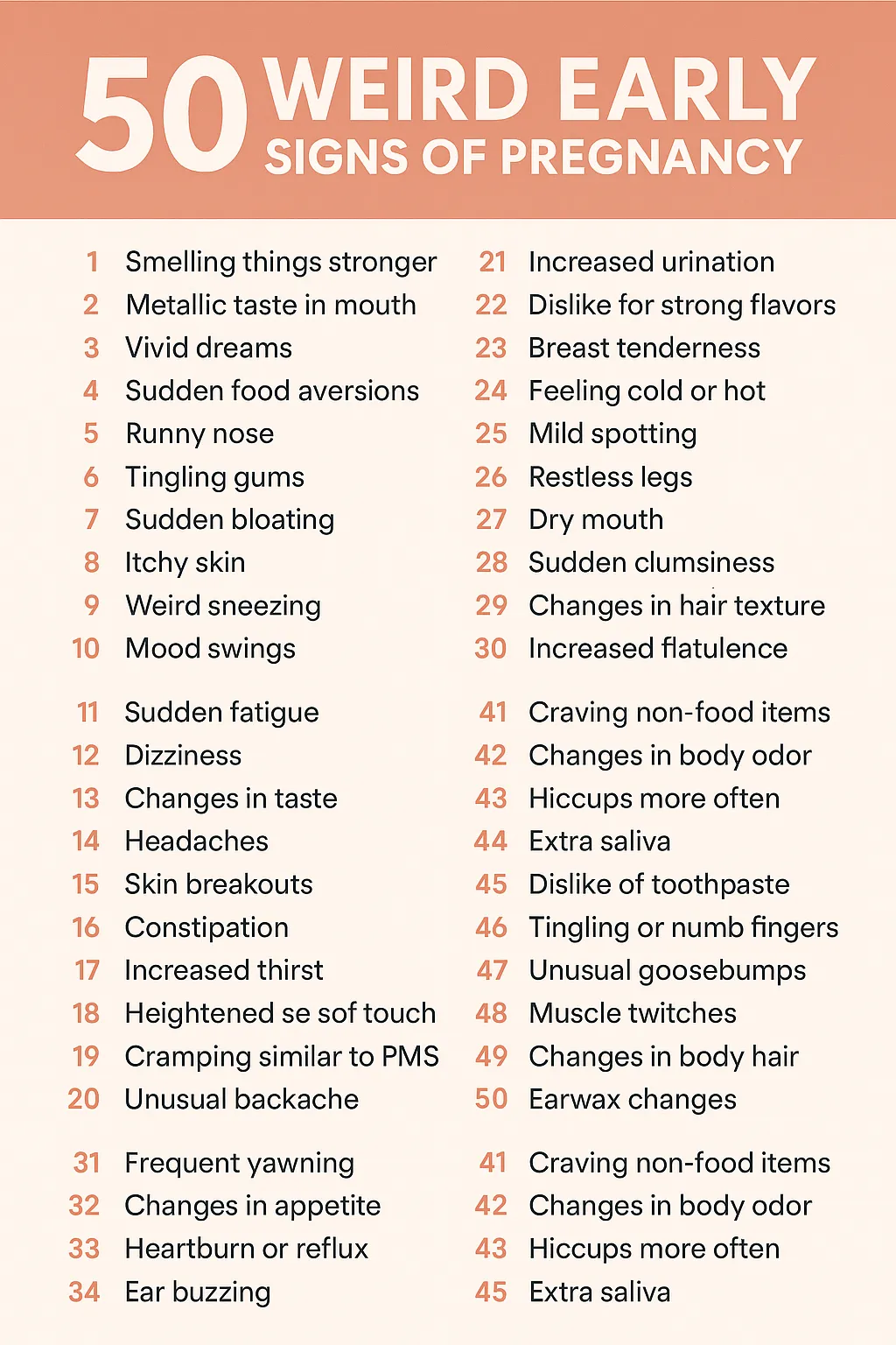 That’s why this list of 50 weird early signs of pregnancy exists: to help you recognize the subtle clues your body may be giving you.