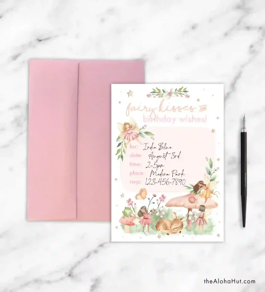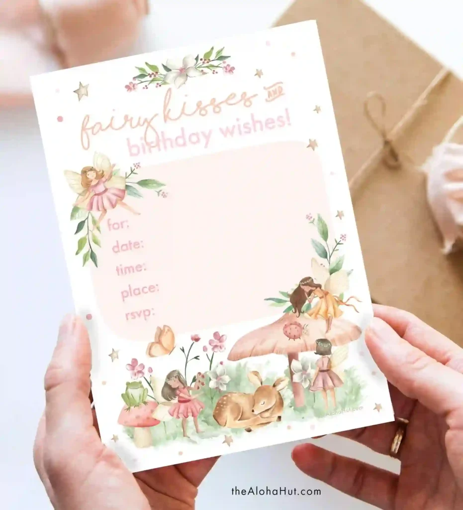 Start the magic right from the beginning with fairy-inspired invitations. Think soft sparkles, whimsical fonts, and a touch of glitter to set the tone for your celebration.