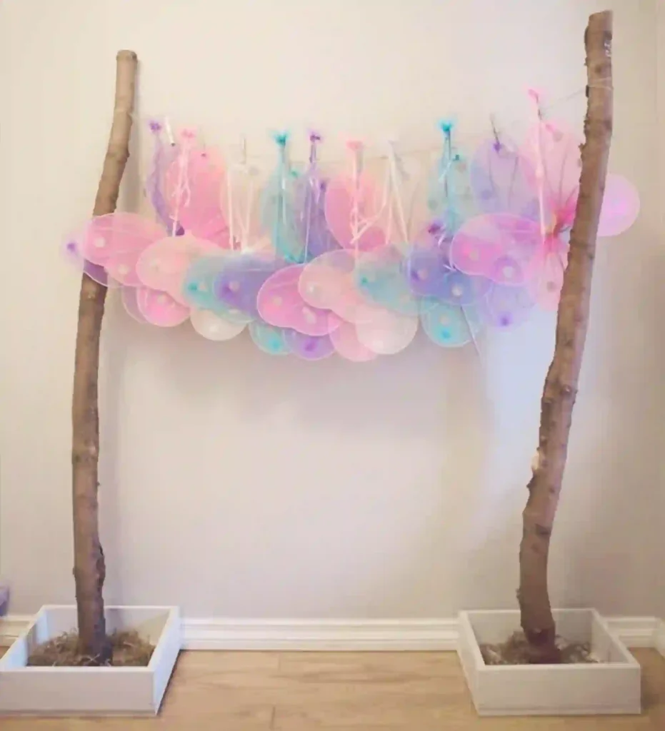 Create a dreamy gateway that welcomes everyone into your fairy world. You can use fairy lights, pastel balloons, large fairy cutouts, or a sign that says “Fairies Welcome.”