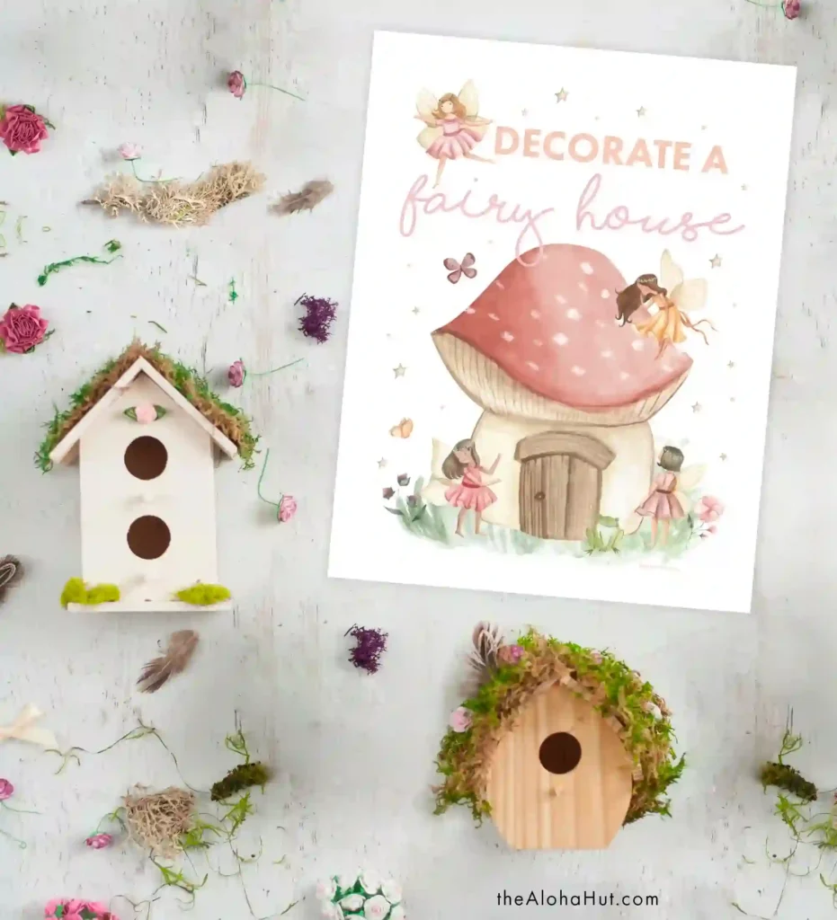 Add a small sign that says “Decorate a Fairy House” so kids know what to do. This activity gives guests something fun to create and a magical souvenir to take home.