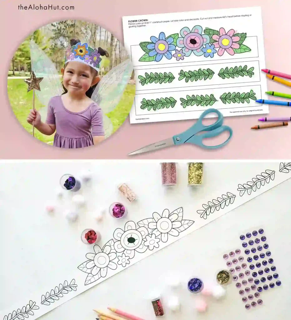 Provide printable fairy crown templates for a sweet and simple craft. Kids can color them with crayons or markers while waiting for food or between games.