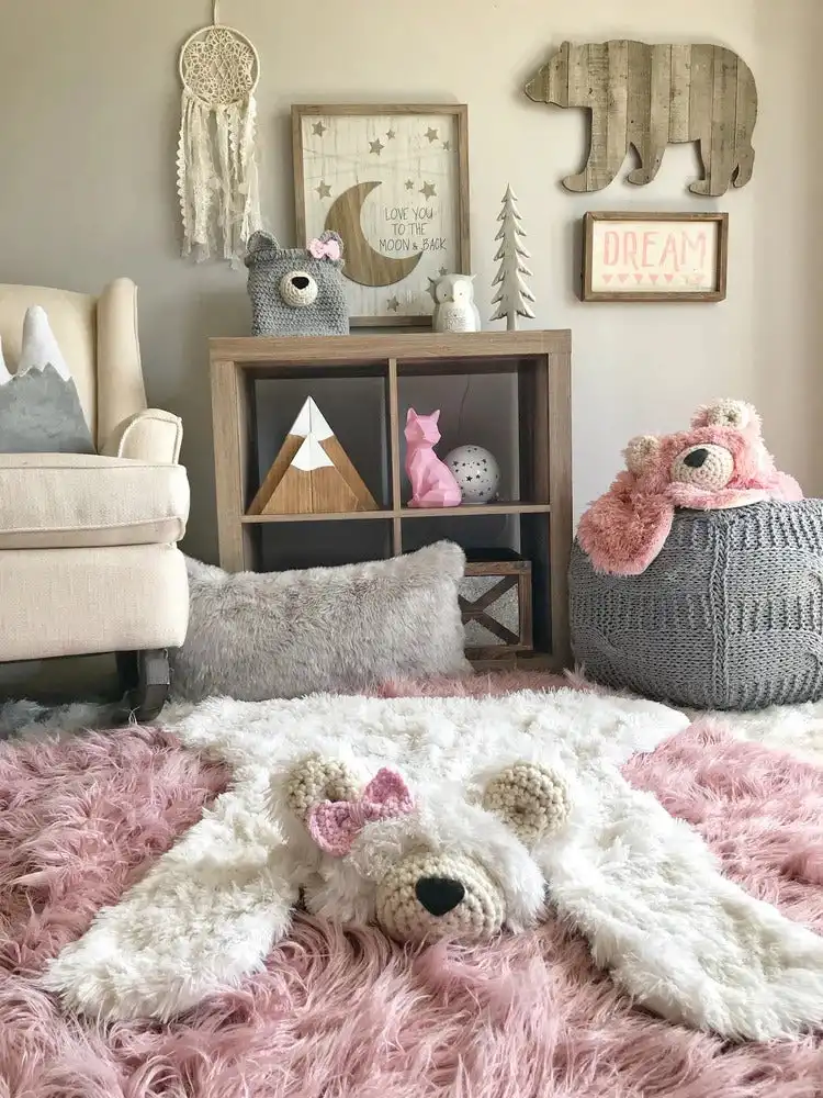Designing a winter nursery that feels both beautiful and practical comes down to thoughtful choices. Every detail, from soft rugs and cuddly loveys to wall-mounted animals and textured blankets, helps tell a story of warmth and care.