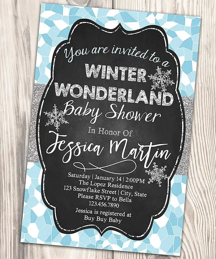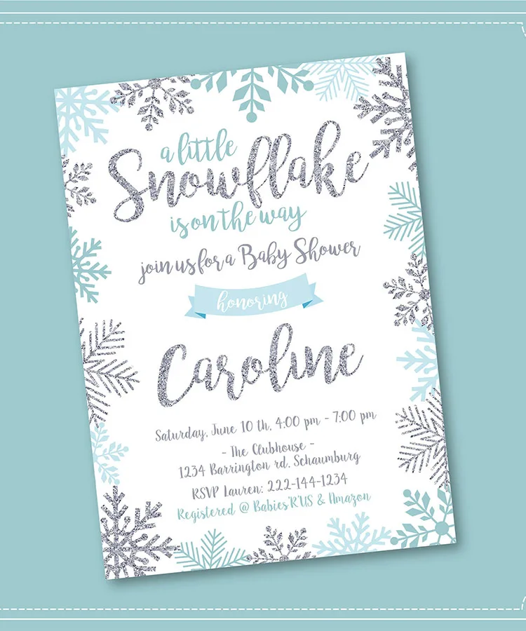 If you love a good DIY project, printable glitter snowflake invitations are both adorable and affordable. Choose a digital file, print as many as you need, and trim with a touch of silver or gold glitter for an extra frosty finish. This simple project adds a personal touch to your shower planning.