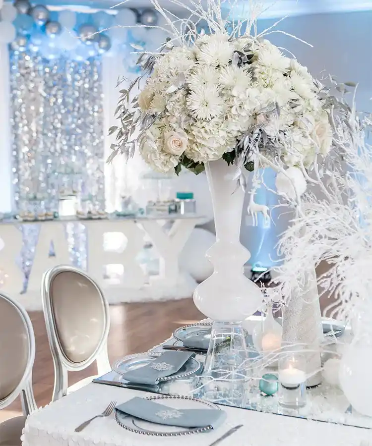 A stunning centerpiece can transform your tables and tie the entire winter wonderland theme together. Whether you love florals, candles, or creative displays, these centerpiece ideas will bring your vision to life and make every table shine.